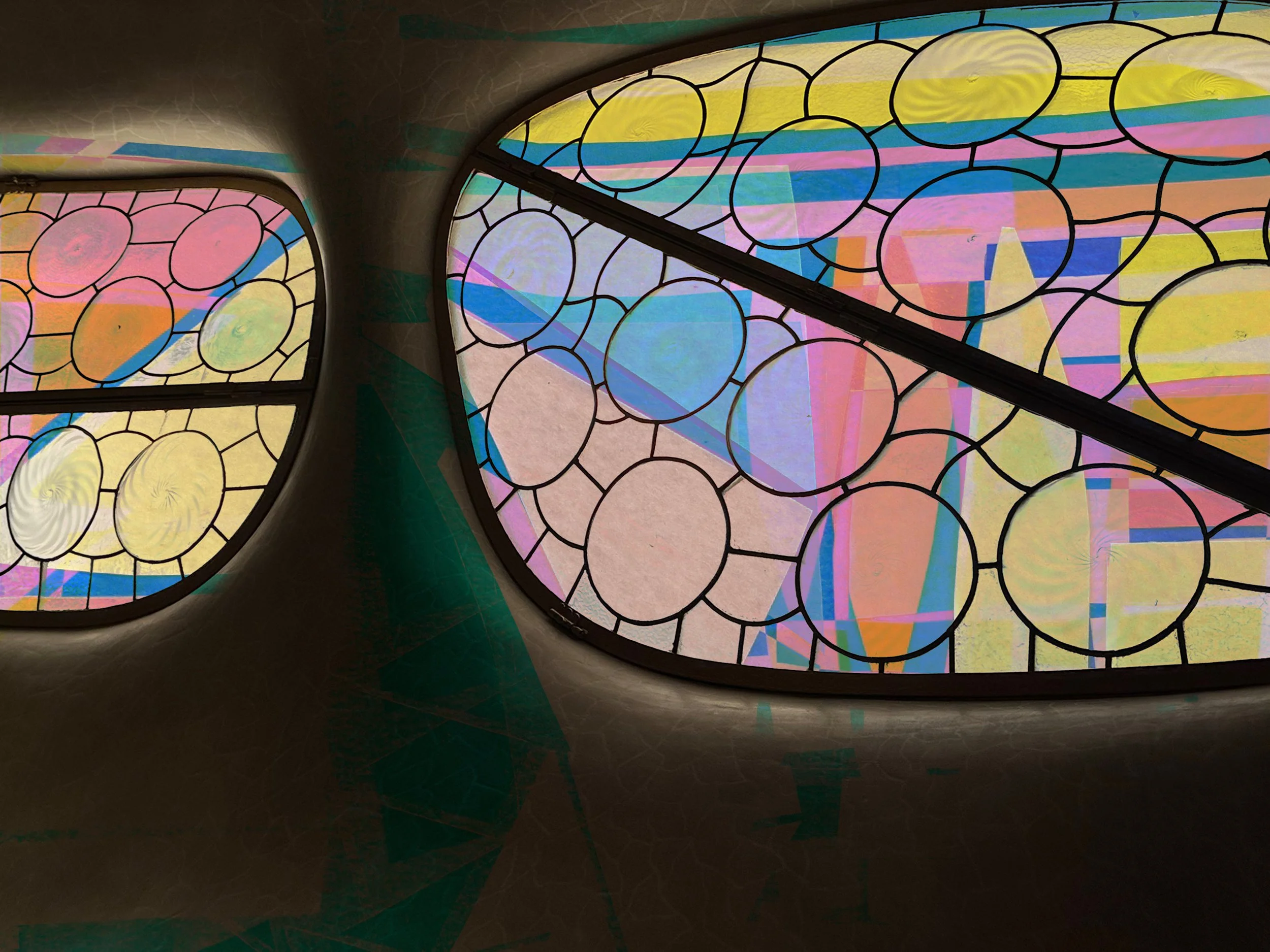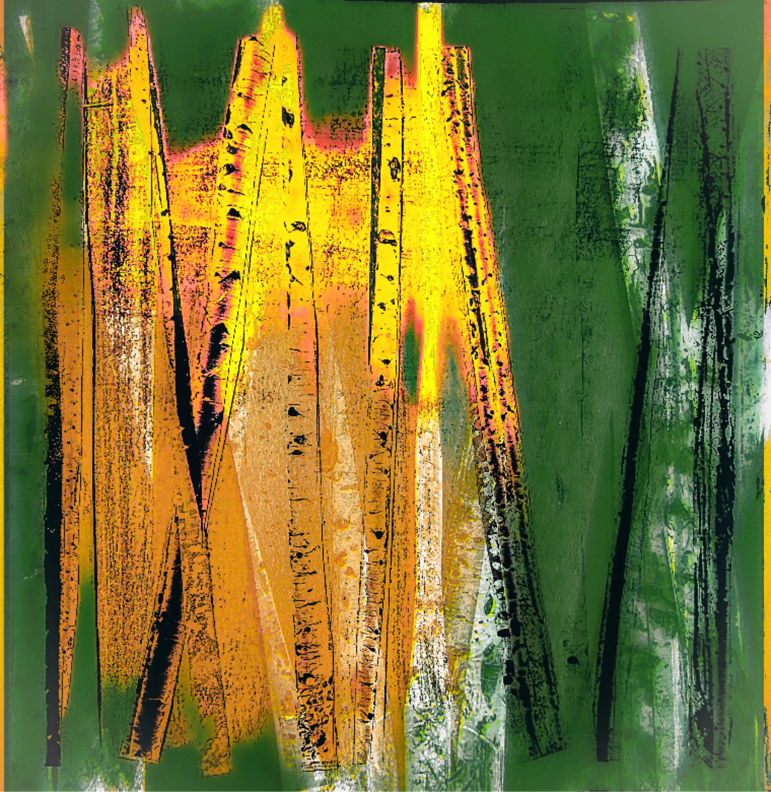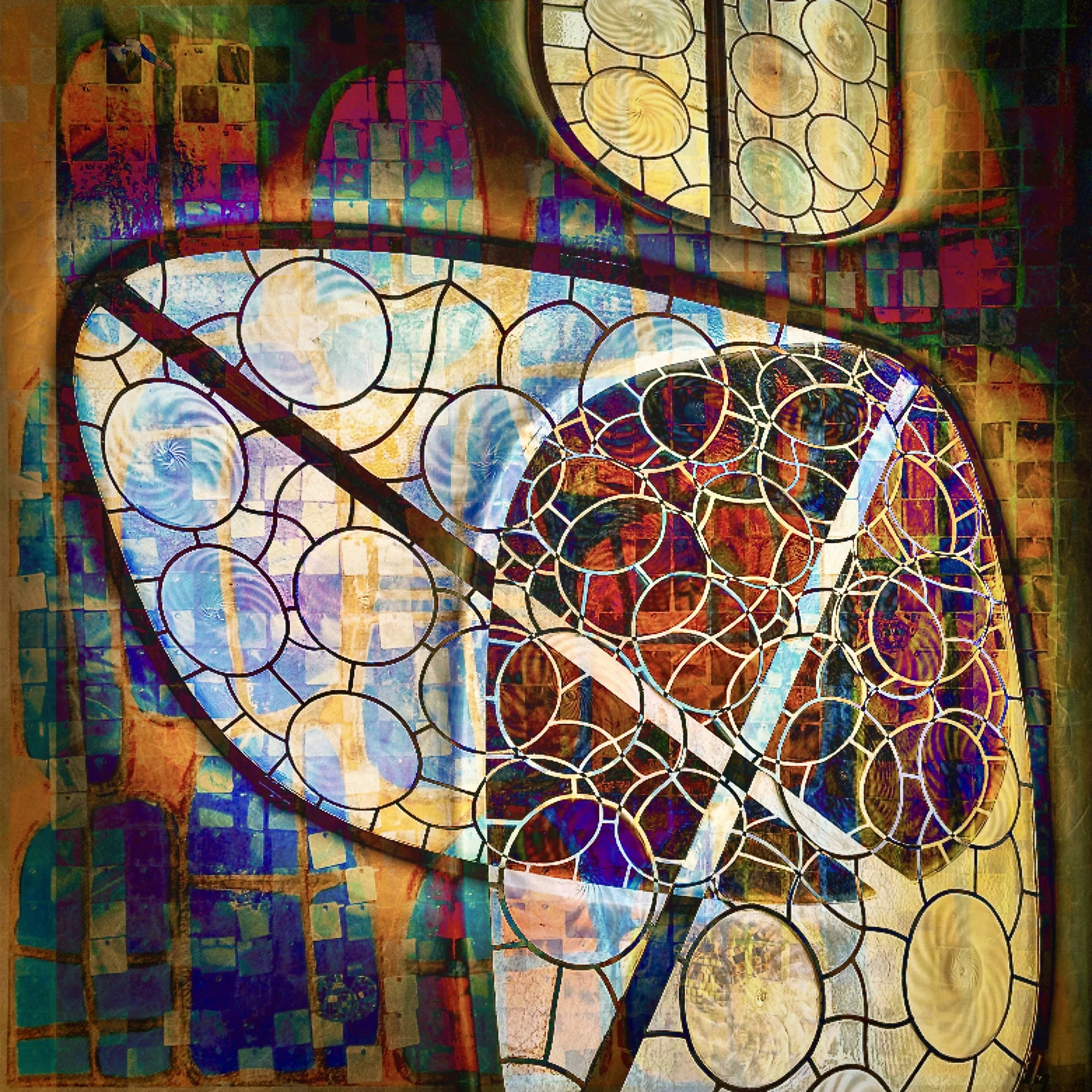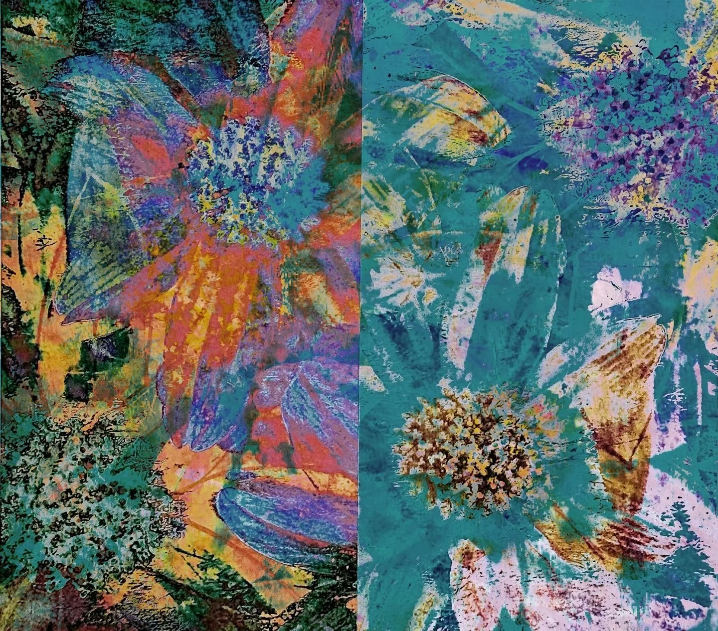 Collages of paint, paper and photographs